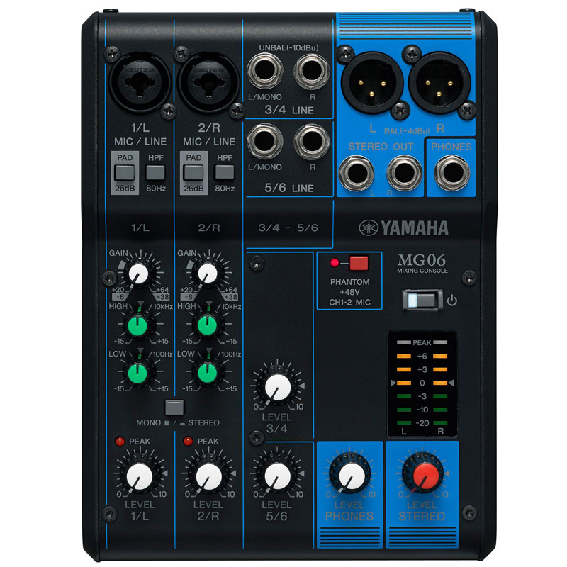 调音台 YAMAHA MG06 "2个话筒 / 6个线路输入 (2个单声道 + 2个立体声)