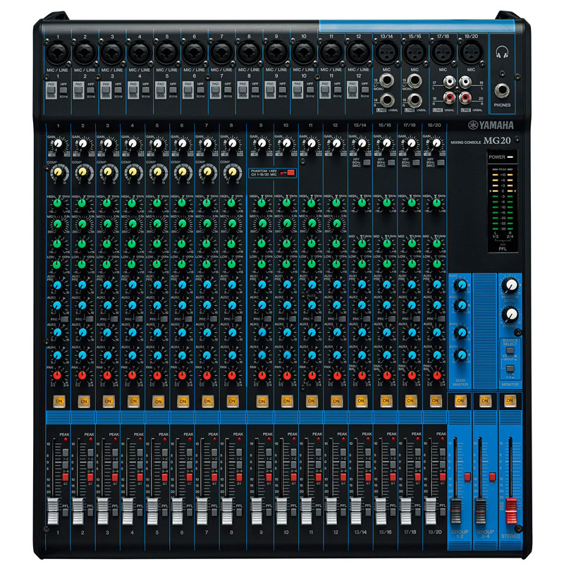 调音台 YAMAHA MG20 "16个话筒 / 20个线路输入 (12个单声道 + 4个立体声)