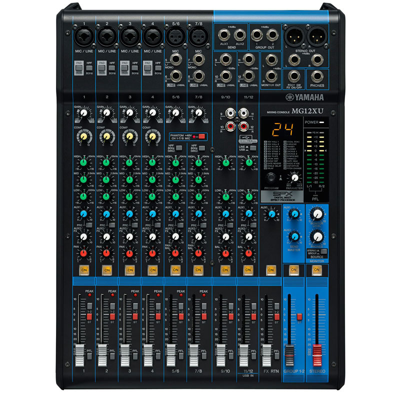 调音台 YAMAHA MG12 "6个话筒/12个线路输入 (4个单声道 + 4个立体声)