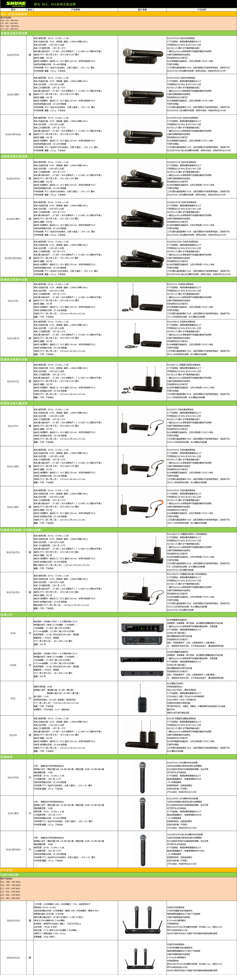 BLX系统兼容多款Shure话筒,您可根据需求随意选择。